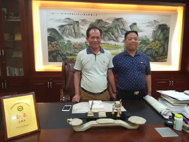 (华歌报道)我会秘书长李志惠一行,近日前往索佳集团看望该集团董事长、本会一届理事会会长马锡民;并就促进会发展进行交流。
