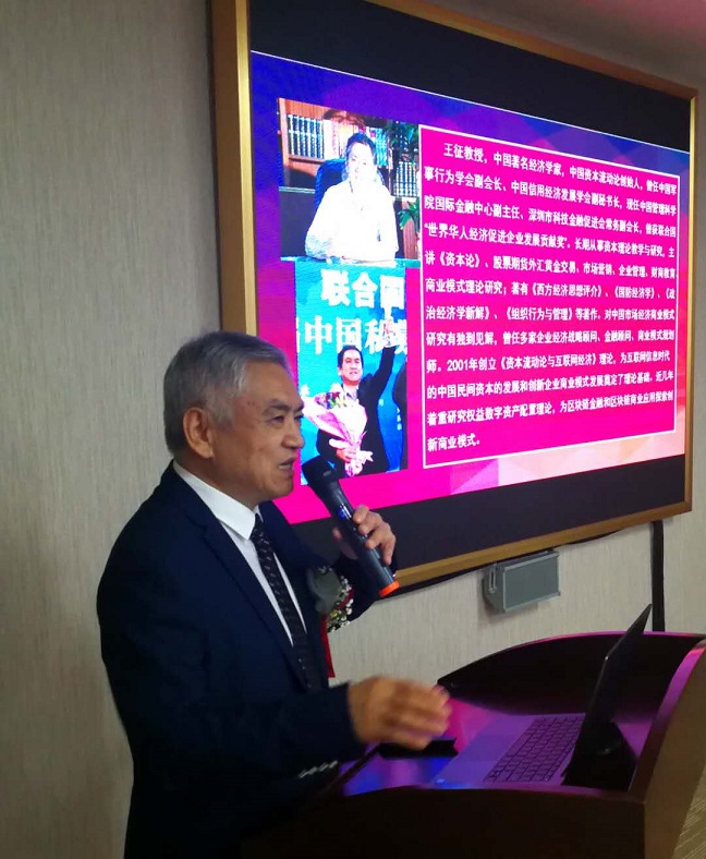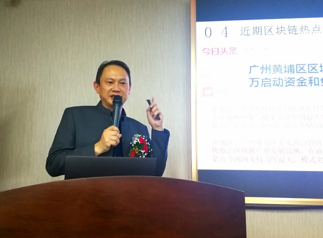 图为香港尚亚交易所董事长张利分析中国区块链研发与应用市场