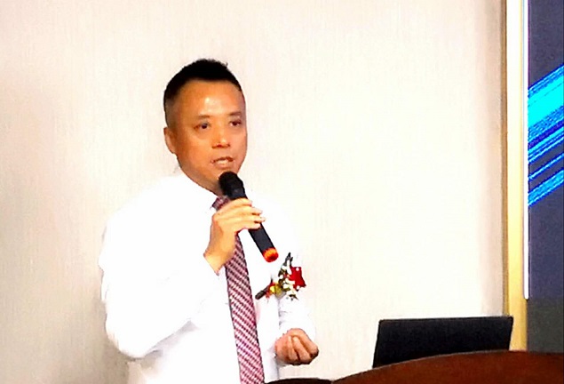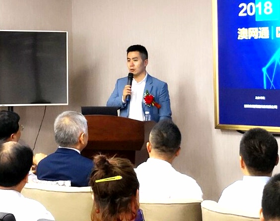 图为澳网通公司董事长王征发表演讲